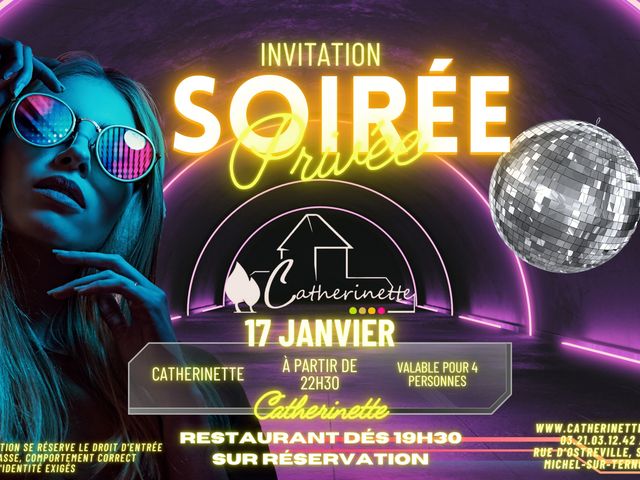 Restaurant dès 19h30, Carte & menu et réservation disponible sur www.catherinette.fr ou par téléphone 03 21 03 12 42